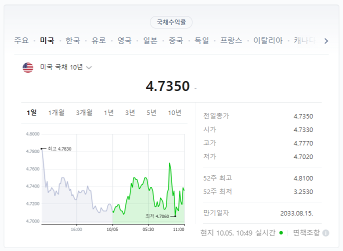 미국 국채금리 변동과 향후 고금리 장기화 전망
