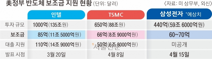 美, 이르면 내주 지원 계획 발표 보조금에 삼성 추가 투자 반영 일각선 “뚜껑 열릴 때까진 몰라”, 인텔에 이어 대만 TSMC에 대한 미국 정부의 보조금 지원 계획이 발표되면서 다음 차례는 삼성