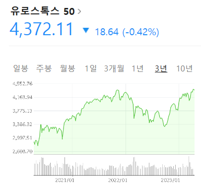 유럽을 대표하는 주가 지수는 여러 가지가 있습니다. 각 나라를 대표하는 지수가 있는가 하면 지금 소개할 유로연합을 대표하는 지수도 있습니다. 오늘은 유로존 12개국 50개 우량 기업을 대표하는 주가지수를 한번 살펴보도록 하겠습니다.