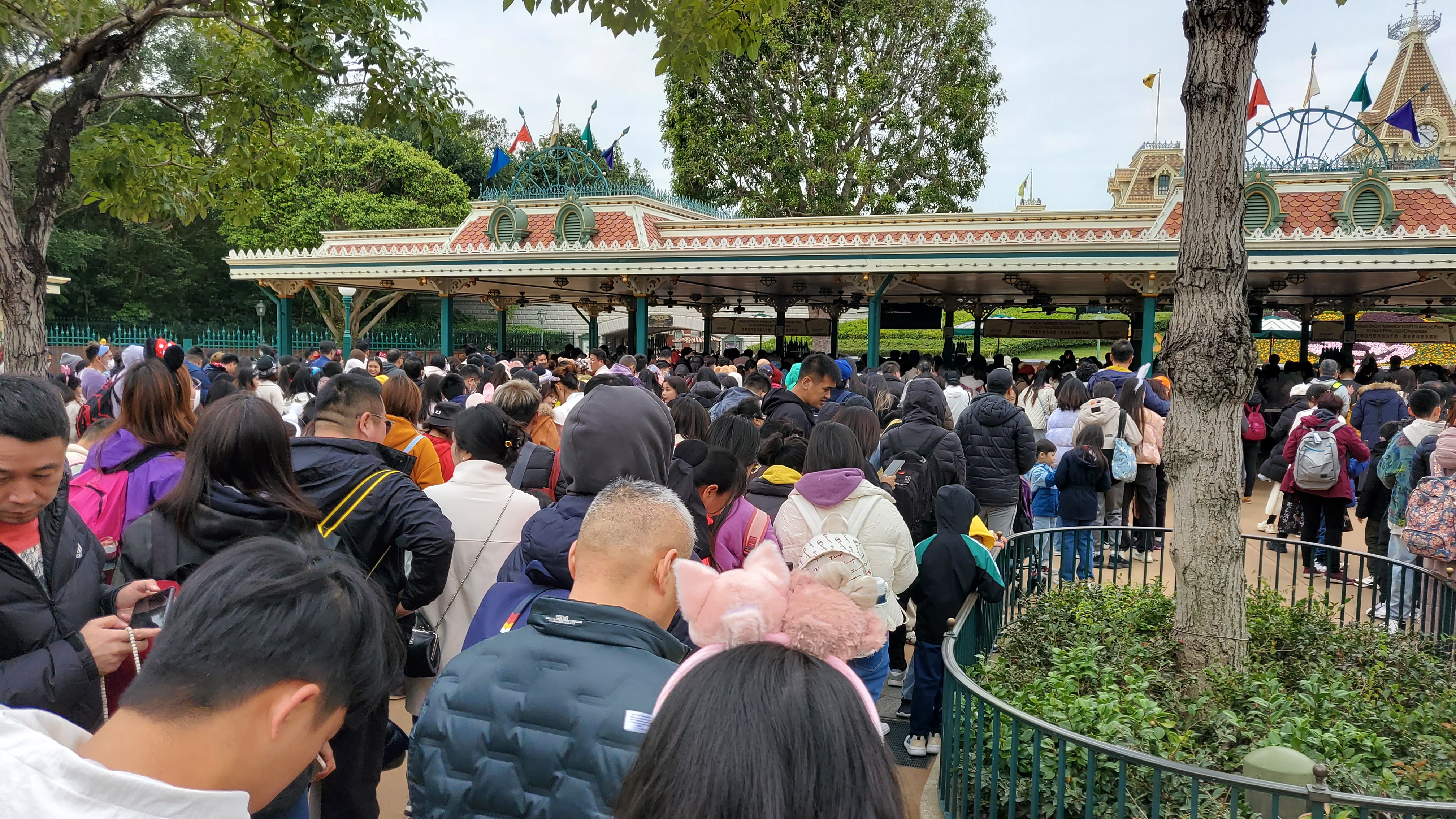 디즈니랜드 호텔에서 디즈니랜드 입구까지는 셔틀버스가 시간간격으로 계속 운행합니다. 체크아웃을 마치고 나면 호텔 로비에서 캐리어를 보관해 줍니다. 줄 서서 보관표를 받고 부푼 마음을 안고 셔틀을 탑승합니다. 이때까지만 해도 엄청난 군중들을 만나게 될 거라곤 예상치 못했습니다.