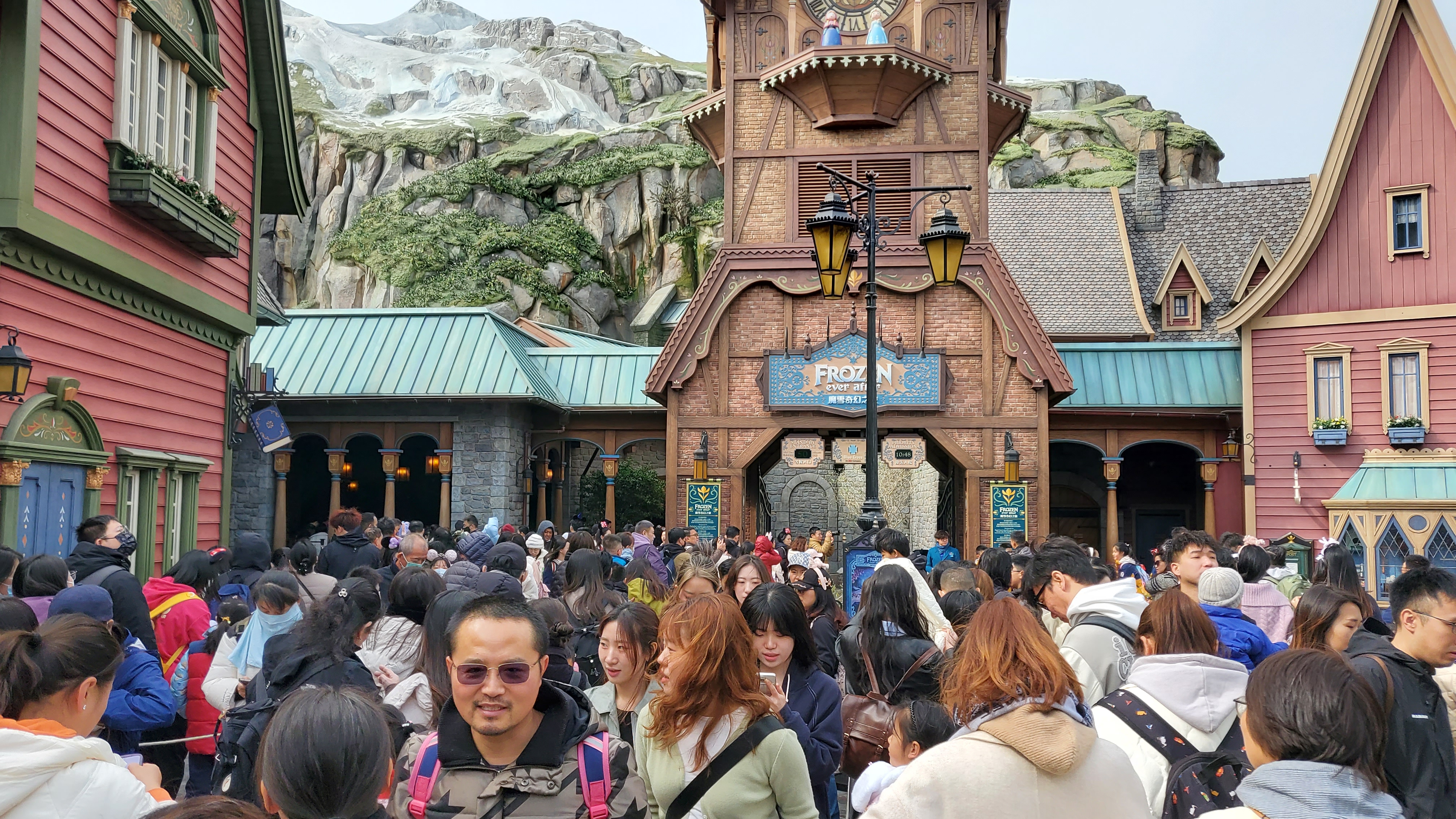 저 또한 많은 놀이기구를 탈 목적이 아니었고 디즈니랜드의 분위기를 즐기고 싶은 마음이 컸기에 애초에 크게 2가지만 꼭 이용해 볼 계획으로 입장하였습니다. 그래서 입장하자마자 세계 최초로 오픈한 겨울왕국 어트랙션 앞으로 돌격했습니다. 나머지 어트랙션은 가능하면 도전하고 아니면 말겠단 생각으로 겨울 왕국으로만 향했는데요. 다행히 오픈 초기 시간대에는 줄이 길지 않아 많이 기다리지 않고 탑승할 수 있었습니다. 또 겨울왕국 어트랙션 대기 중에 엘사가 옆으로 지나가는 행운도 있어서 촬영도 했네요.