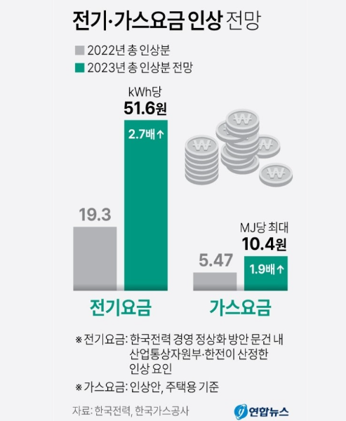 아울러 전기세 및 가스비 또한 인상을 하였는데요. 서민 경제에 실질적으로 피부에 와닿을 정도로 파격적인 인상이라고 볼수 있겠습니다. 올겨울 가스비 상승에 따른 난방비 상승은 모두가 다 체감했을 것으로 파악되는데요
